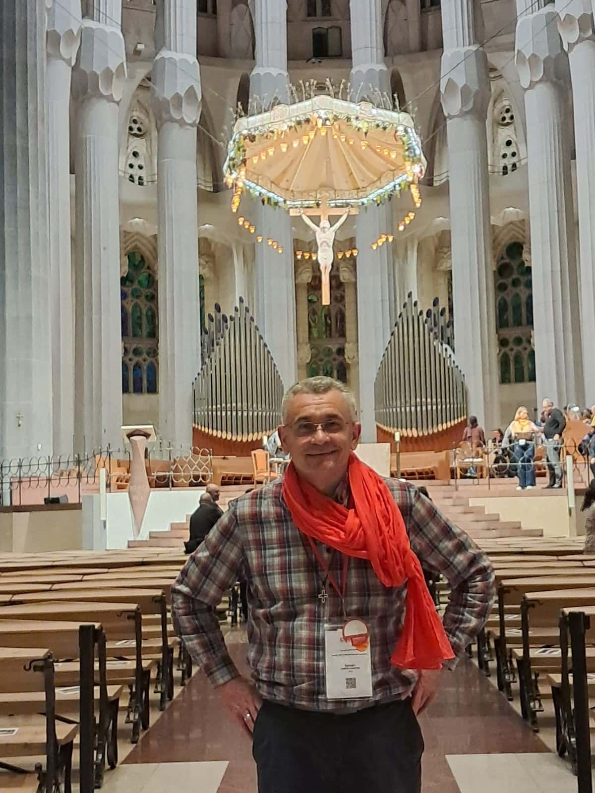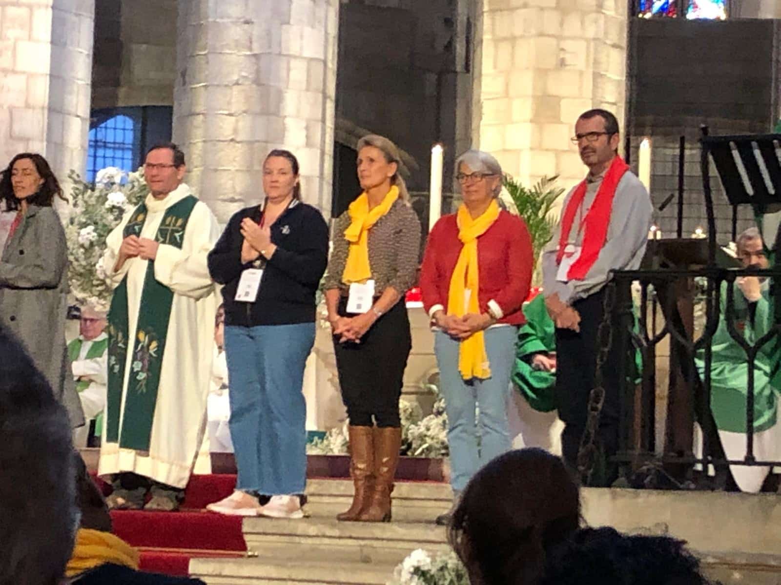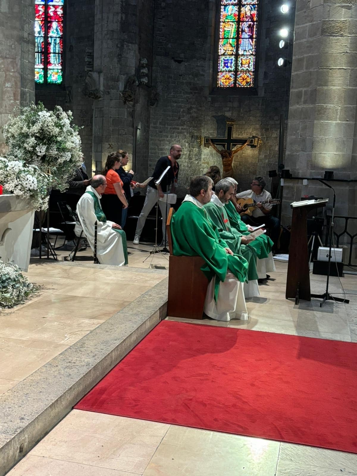 D’abord sans doute aux chèches jaunes ! Ce petit bout de tissu éclatant accordé aux rayons du soleil barcelonais constituait le signe extérieur d’une appartenance à un même réseau. Des chèches donc, pour se reconnaître, s’interpeler, faciliter les échanges informels entre deux activités, ou se sourire tout simplement. Oui, l’effet rassemblement avec ses temps forts (en particulier la magnifique veillée méditative, la soirée festive et la messe d’envoi) m’a donné du souffle, de l’élan, a produit en moi une espère de fierté d’appartenir à une communauté vivante qui propose un visage de l’Eglise auquel je tiens.